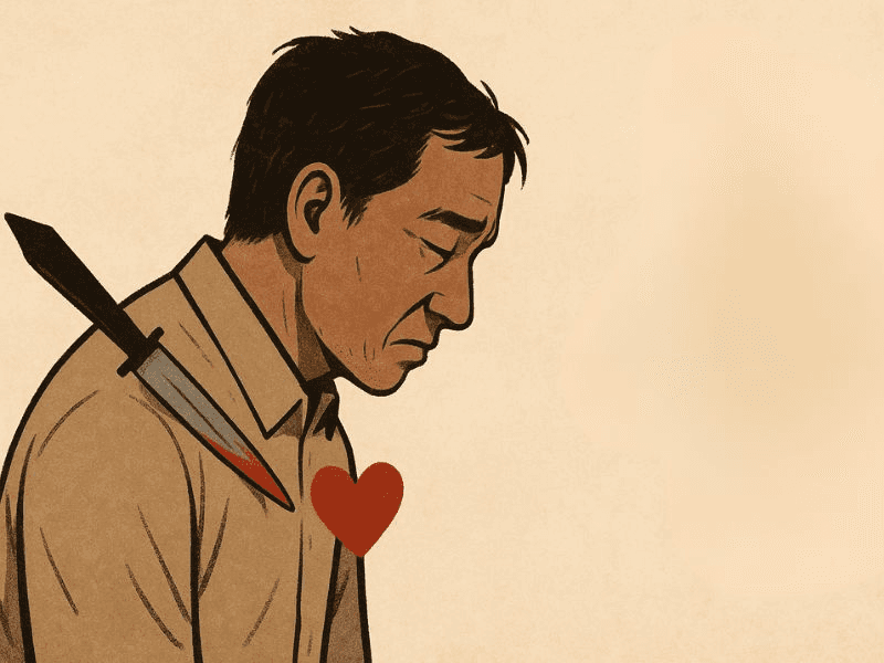 Littéralement, ce mot est composé de 刃 (rèn, lame) et 心 (xīn, cœur). Donc : une lame… plantée dans le cœur. Mais sans un cri. Sans une plainte.