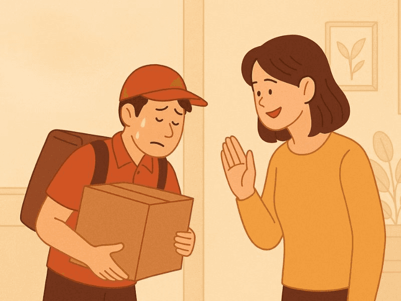 ✅un livreur qui vient de monter 5 étages sans ascenseur ;