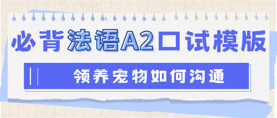 备考DELF A2口语考试?“领养宠物如何沟通”是一个高频话题,我们将提供完整的口试例题解析、答题思路、实用模版和考官常见提问预测,帮助你掌握口语表达的结构与应答技巧,提升流利度与交流能力。适合希望快速提分、增强口语自信的法语学习者!