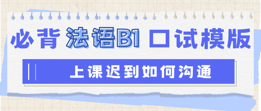 备考DELF B1口语考试?“上课迟到如何沟通”是一个高频话题,我们将提供完整的考试题型解析、答题策略、对话示例、重点词汇及其地道用法,帮助你掌握中级口语表达结构与逻辑,提升表达的连贯性与准确性。适合希望突破瓶颈、强化实战应答能力的法语学习者!