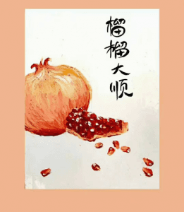 « 榴 » de « 石榴 » est l’homophone de « 六 » (liù), le chiffre « six ». En chinois, l’expression « 六六大顺 » (liùliù dà shùn) est très courante, ca veut dire « Six six tout se passe bien » ! C’est une locution qui vient de « 左传 » (zuǒ zhuàn, Commentaire de Zuo). C’est un souhait de bonheur pour la famille, pour avoir du succès au travail et une bonne santé.