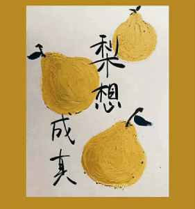 « 梨 » a la même prononciation que « 理 » dans l’expression « 理想成真 » (lǐxiǎng chéng zhēn) : – Que tous vos rêves se réalisent !
