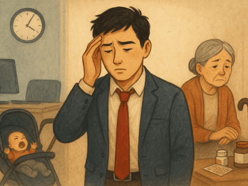 C’est ce qu’on appelle la génération sandwich (三明治一代, sānmíngzhì yīdài). Et c’est lourd. Très lourd.