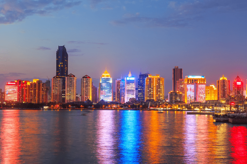 La ligne d’horizon de Qingdao, ponctuée de bâtiments imposants, reflète une ville qui évolue constamment et atteint de nouveaux sommets. Ces structures modernes sont les centres d’activité économique et commerciale qui stimulent la croissance de la ville.