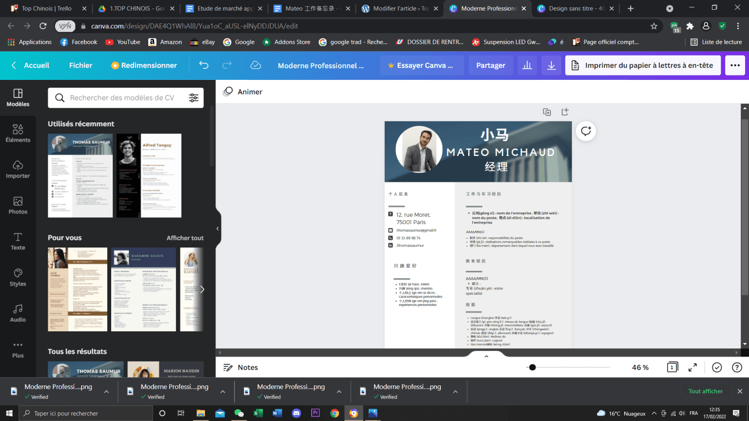 Vous n’aurez aucun problème à l’envoyer par la suite. Il y a plusieurs thèmes proposés certains payants et d’autres gratuits. A vous de faire votre choix, vous pouvez également passer par un éditeur de CV Chinois. Mais vous aurez sûrement moins de possibilité de personnalisation et vous risquez de vous perdre dans l’usage des fonctionnalités. En revanche, cela peut vous aider si vous souhaitez vous familiariser avec des outils numériques chinois.