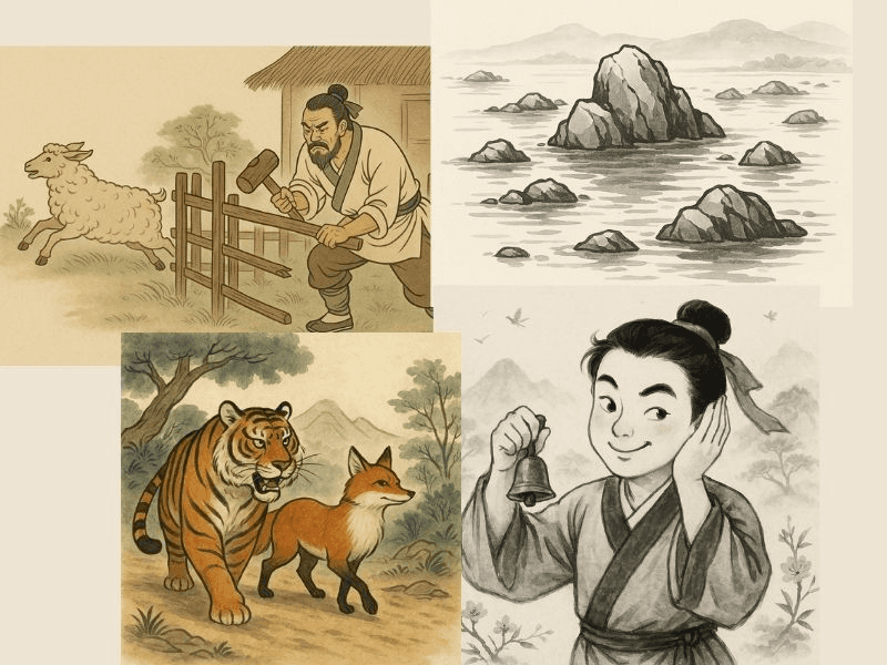 亡羊补牢 (wáng yáng bǔ láo) — « Réparer l’enclos après la fuite des moutons »