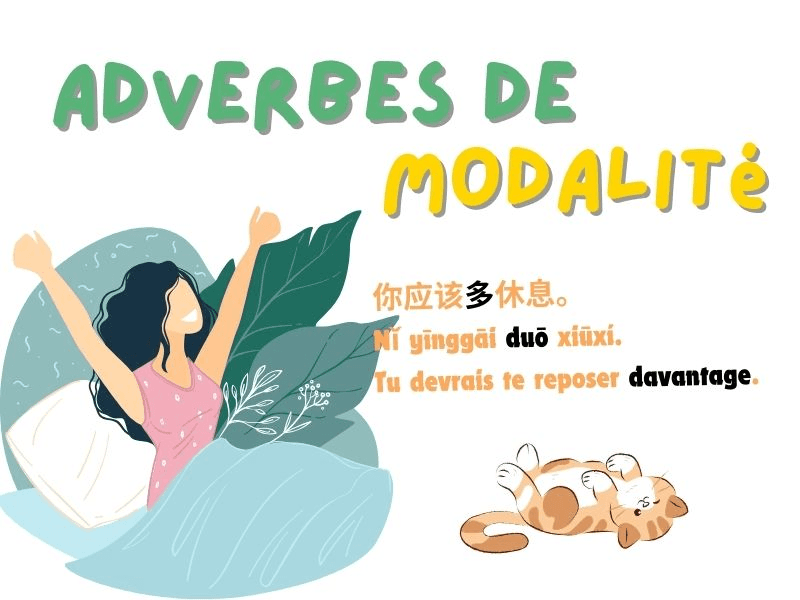 En chinois, pour marquer explicitement qu’un mot est un adverbe de manière, on ajoute souvent le caractère 地 (de) après l’adverbe. Cela équivaut un peu à ajouter « -ment » en français pour former un adverbe.