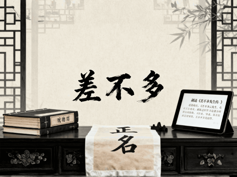 Au début du XXe siècle, l’intellectuel HU Shi (胡适) publie un essai satirique : La biographie de Monsieur À-peu-près《差不多先生传》. Il y raconte l’histoire d’un homme dont toute l’existence est guidée par le « à peu près » : il soigne ses maladies « à peu près », il fait son travail « à peu près »… et finit par mourir « à peu près » bien.
