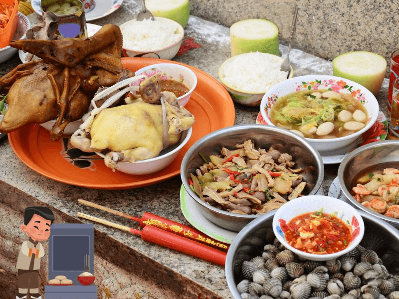 ✅Des plats cuisinés: il est d’usage d’apporter les plats préférés du défunt, comme du canard rôti, du porc laqué ou encore des petits plats maison.