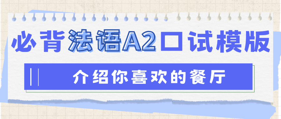 备考DELF A2口语考试?“介绍你喜欢的餐厅”是一个高频话题,我们将提供完整的口试例题解析、答题思路、实用模版和考官常见提问预测,帮助你掌握口语表达的结构与应答技巧,提升流利度与交流能力。适合希望快速提分、增强口语自信的法语学习者!