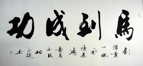 Quand les Chinois pratiquent la calligraphie, ils aiment bien écrire des 成语 “chéng yǔ”. Les “成语”, ce sont des proverbes chinois en 4 caractères. Un chengyu très présent dans la calligraphie chinoise est 马到成功 “mǎ dào chéng gōng”.