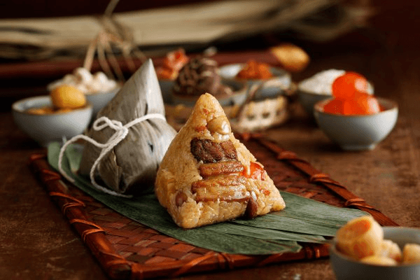 Ça vous donne envie de faire du 舟 ? Faire la course de Bateaux-Dragons est peut-être trop compliqué, mais une balade en pédalo, pourquoi pas ? Sinon, nous avons une autre activité pour célébrer la fête de Duanwu, c’est manger des 粽子 (Zongzi). C’est un gâteau de riz gluant en forme de pyramide enveloppé de feuilles de roseau.